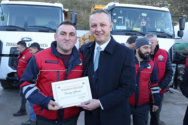 Zonguldak Belediye Başkanı Ömer Selim Alan, Su ve Kanalizasyon İşleri Müdürlüğü'nde görevli personelle bir araya gelerek teşekkür belgelerini takdim etti.