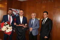 Türkiye Faal Futbol Hakemleri ve Gözlemcileri Derneği (TFFHGD) Zonguldak Şube Başkanı Ümit Kaya, Yönetim Kurulu Üyesi Murat Kaskun ve eski başkan Nurettin Demir Belediye Başkanı olarak seçilen Ömer Selim Alan'a hayırlı olsun ziyaretinde bulunarak görevinde başarılar diledi. Başkan Ümit Kaya ziyaretin ardından Belediye Başkanı Selim Alan'a günün anısına hakem forması ve çiçek takdim etti. Belediye Başkanı Ömer Selim Alan, ziyaretten duyduğunu memnuniyeti dile getirerek, Türkiye'de ki takımlarda ilk 11'de 7-8 yabancı oyuncunun oynatılmasını doğru bulmadığını söyleyerek, hafta sonu oynanacak Galatasaray Başakşehir maçında Galatasaray'ın saha ve seyirci avantajının olduğunu belirtti.