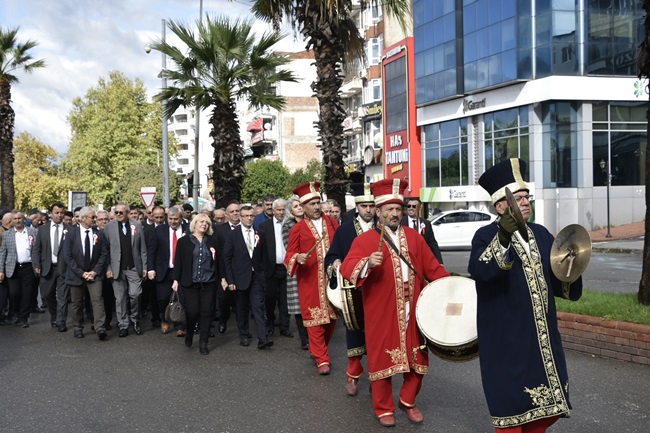 Atatürk Anıtrı önünde 19 Ekim Muhtarlar Günü töreninin sona ermesiyle muhtarlar Mehteran Takımı eşliğinde Kdz.Ereğli Muhtarlar Derneğine dek yürüyüş gerçekleştirirken, yürüyüşün ardından tören sona erdi.