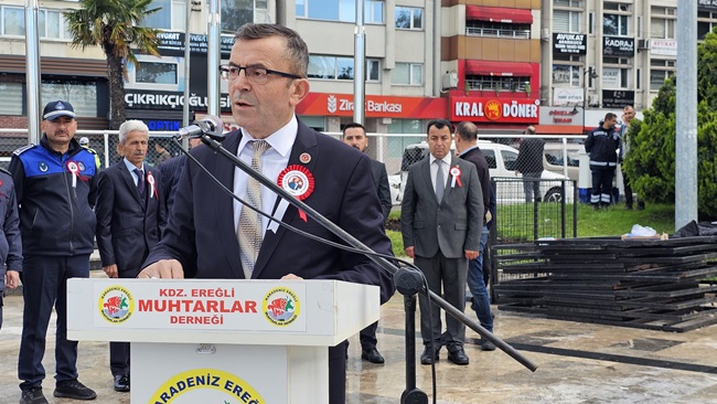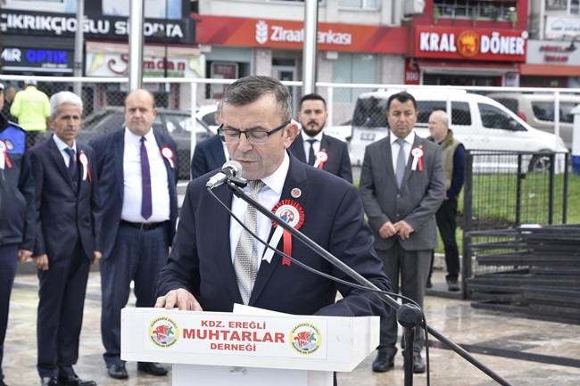Günün anlam ve önemine ilişkin bir konuşma yapan Kdz.Ereğli Muhtarlar Derneği Başkanı Adnan Alar, konuşmasında muhtarlığın Türkiye'deki yerel yönetim ve demokrasi açısından kritik bir rol üstlendiğini vurgulayarak, “Vatandaşlarımızın devletimize ihtiyaç duyduğunda çalacakları ilk kapının muhtarlarımız olduğunun bilincindeyiz,” dedi. Alar, muhtarların sadece köy ve mahalle sakinlerinin değil, aynı zamanda devletle olan ilişkilerinin de önemli birer aracı olduklarını belirterek şunları dile getirdi ‘ Üyesi olduğumuz Türkiye muhtarlar konfederasyonumuzun 3 Mart 2015 tarihinde içişleri bakanlığı mahalli idareler genel Müdürlüğüne yapmış olduğu müracaatı neticesinde Osmanlı arşivinde 2. Mahmut döneminde yayınlanan ferman ile 19 Ekim 1829 tarihinde kurulan muhtarlık teşkilatının kuruluş günü esas alınarak 19 Ekim günü muhtarlar günü olarak kutlanmasına karar verilmiştir. Bugünü bizlere "muhtarlar günü" olarak hediye eden başta cumhurbaşkanımız Recep Tayyip Erdoğan' a hükümetimize ve gazi meclisimize çok teşekkür ederiz. Muhtarlar bir yandan köy ve mahalle sakinlerinin devlet kurumlarıyla ilişkilerinde aracı bir rol oynarken, diğer yandan da çağdaş kamu yönetimi anlayışının en temel gereksinimlerinden biri olan katılımcılığın sağlanmasında önemli bir görevi yerine getirmekte, daha anlaşılır bir ifade ile devlet vatandaş arasında bir köprü vazifesi görmektedir. Muhtarlığın 193 yıllık merkezi/yerel idareyi temsil eden kurumları arasında toplumsal barışın sağlandığı müesseselerden biri olduğu unutulmamalıdır. Çünkü temsil ettiği gücü Türkiye Cumhuriyeti mühründen alan bu müessese siyasallaşmamış tek çözüm merkezidir. Gazi Mustafa Kemal Atatürk’ün dediği gibi muhtar, demokrasinin temel taşıdır: biz muhtarlar sorumluluk alanlarımız da insanlara şefkatle yaklaşarak, onların derdine çare bulmak için de ilgili kurumlarla görüşüp çare arayacağız. Muhtarlar mahallesinde ve köyünde devletin gözü, kulağı, eli, ayağıdır. Bizler mevcut yapı içerisinde görevimizi en iyi şekilde yapmak durumundayız. Örnek muhtar örnek insan olmak durumundayız. Örnek muhtar halkının sorunlarını ilgili makamlara götüren ve çözen muhtardır. Cumhurbaşkanımızın da dediği gibi "Cumhurbaşkanı olarak seçilmişim ve benim muhtarım da seçilmiş demokrasi noktasında benim muhtarımla aramda bir fark yok da seçilmiş ben de." diyerek demokrasi kültürünün gelişmesinde seçilmişlerin yerini işaret etmiş, aynı zamanda muhtarlarımızın bu noktadaki önemini de vurgulamıştır. Edeceğiz. Bu vesileyle, görevi başında bu aziz vatan ve millet uğrunda şehit düşen bütün muhtarlarımıza yüce rabbimden rahmet diliyor, bir taraftan devleti, bir taraftan da milleti temsil eden, ülkemizin dört bir yanındaki kıymetli muhtarlarımızın 9.yılını kutladığımız 19 Ekim muhtarlar günü “nü en içten dileklerimle kutluyor, sağlıklı, hayırlı ve başarılı görevler diliyorum” diye konuştu