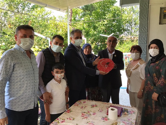 İlçe Başkanı Bozkurt, daha sonra İlçe Yönetim Kurulu Üyeleri Şenol Akyol, Hanife Kaya, İlçe Kadın Kolları Başkanı Fadime Doğru ve İlçe Gençlik Kolları Başkanı Tunay Berber birlikte; Şehit Tayfun Demirbay’ın babası Mustafa Demirbay, Şehit Ayhan Demirci’nin babası Kamil Demirci, Şehit Kenan Döngel’in babası Özcan Döngel, Şehit Oğuzhan Demirdüyen’in babası Mehmet Ali Demirdüyen, Şehit Engin Özcan’ın babası İsmail Özcan, Şehit Tuncay Yıldızhan’ın babası Hakkı Yıldızhan, Şehit Hüseyin Bırak’ın babası Mustafa Bırak, Şehit Ramazan Erdem’in babası Mustafa Erdem ve Şehit Asım Çömeten’in babası Hasan Çömeten’i ziyaret etti.