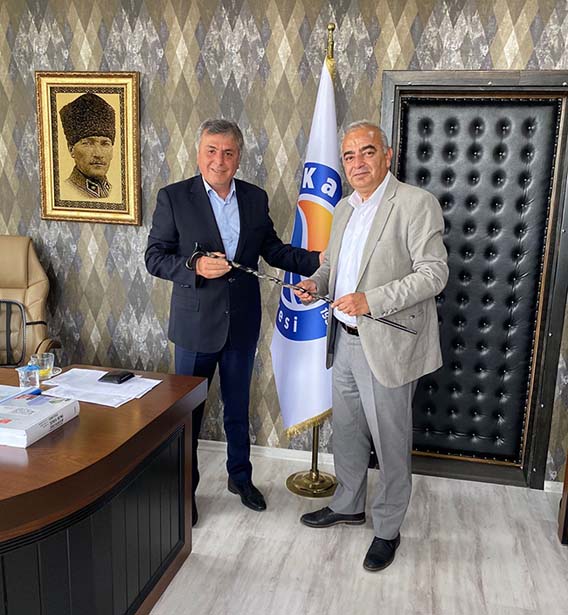Başkan Çetin Bozkurt da, Başkan Aydın'a gösterdiği nezaket ve misafirperverliği nedeniyle teşekkür ederek, ziyaretin anısına bir de Devrek Bastonu hediye etti.