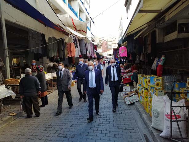 Pazaryeri esnafını ziyaret eden Başkan Çetin Bozkurt, esnafa “Hayırlı işler ve bol kazançlar” dileğinde bulunarak sorunlarının olup olmadığını sordu. Pazara gelen vatandaşlarla da sohbet etti. Pandemi kurallarına uyma konusunda uyarılarda bulundu. Koranavirüsle mücadelede alınan kurallara uymanın hayati öneme sahip olduğunu ifade eden Başkan Bozkurt, “Vatandaşlarımızın, ihtiyaçlarını karşılamak için gittiği pazar yerlerinde tedbirlerimizi en üst seviyeye çıkardık. Zabıta ekiplerimiz aracılığıyla, alınan önlemlerin denetimini düzenli aralıklarla sürdürüyoruz. Her yeni karar sonrası gerek pazar esnafımızı gerekse vatandaşlarımızı bilgilendiriyoruz. Halkımızdan beklentimiz, alınan tedbirlere uymalarıdır. Ancak bu şekilde, içerisinde bulunduğumuz sıkıntılı süreci atl