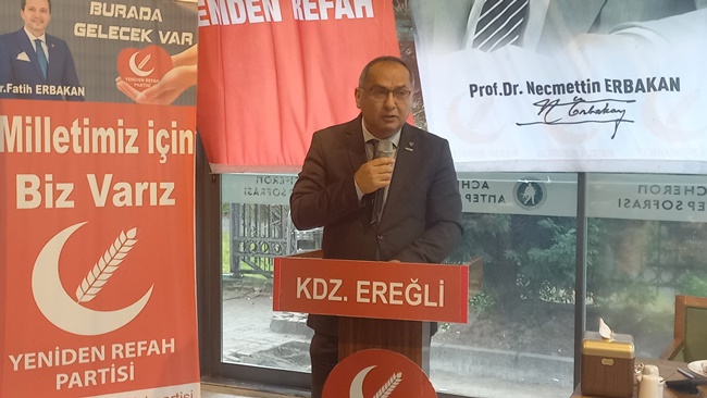 Karadeniz Ereğli İlçe Başkanı Adem Çetinkaya ise, “Yeniden Refah Partimizin ana hedefi, milletimizin maddi ve manevi kalkınmasını gerçekleştirerek huzur ve refaha ulaşmasını sağlamaktır. Bununla birlikte ilmi,siyasi, iktisadi ve ahlaki alanlarda gerekli adımları atmaktır. Bizler kavga etmek, yıkmakiçin gelmiyoruz. Bizler siyasete nezaket ve zarafet kazandırmak için geliyoruz. Bugüne kadar yapılan hayırlı hizmetlere teşekkür etmek, tebrik etmek için geliyoruz. Eksikleri tamamlamak, eksik yapılanları da nihayete erdirmek, yanlışları da doğrusunu ortaya koymak suretiyle düzeltmek için geliyoruz. Kuruluşumuzdan bugüne, tüm yok saymalara rağmen, medya ambargolarına rağmen, anket manipülasyonlarına rağmen, bugün gelinen noktada 81 ilde, 922 ilçede teşkilatlarımızı tamamladık. Son sekiz ayda oransal bazda en yüksek üye sayısına ulaşan siyasi parti olmuştur. Allah’ın izniyle partimiz her geçen gün yıldızı parlayan bir parti haline gelmiştir” dedi.