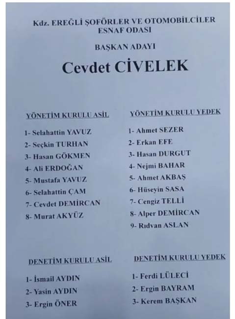 Cevdet Civelek, oluşturduğu yeni listeyle şoför esnafının güçlü isimleriyle güven tazeleyerek önümüzdeki dönemde de oda çalışmalarını kararlılıkla sürdüreceklerini ifade etti.