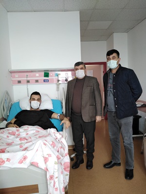 Zonguldak’ın Ereğli İlçesinde, Türk Metal Sendikası Şube Başkanı Metin Ercan, iş yerinde geçiridği kaza sonucu yaralanan sendika üyesi işçiyi, hastanede ziyaret etti.
