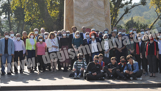 Başkan Ertuğrul’un konuşmasının ardından, törene katılanlar anıt önünde hatıra fotoğrafı çektirdi.