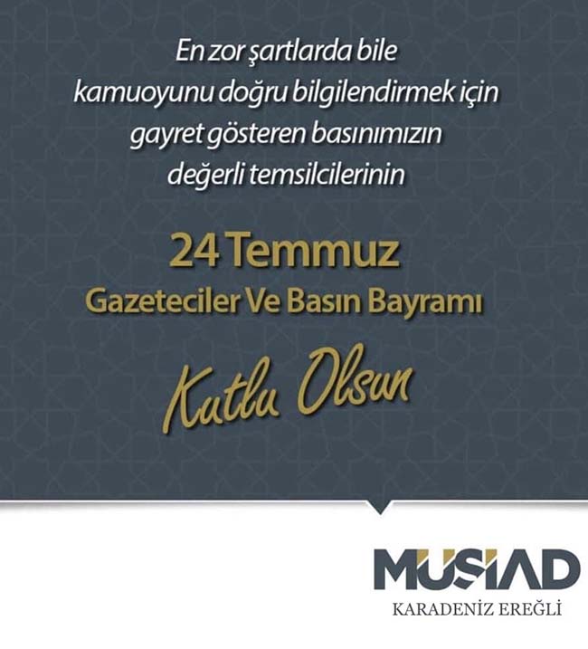 MÜSİAD Karadeniz Ereğli Şube Başkanı Kemal Gülbay, 24 Temmuz Basından sansürün kaldırılmasının 115. yıldönümü nedeniyle mesaj yayımladı.