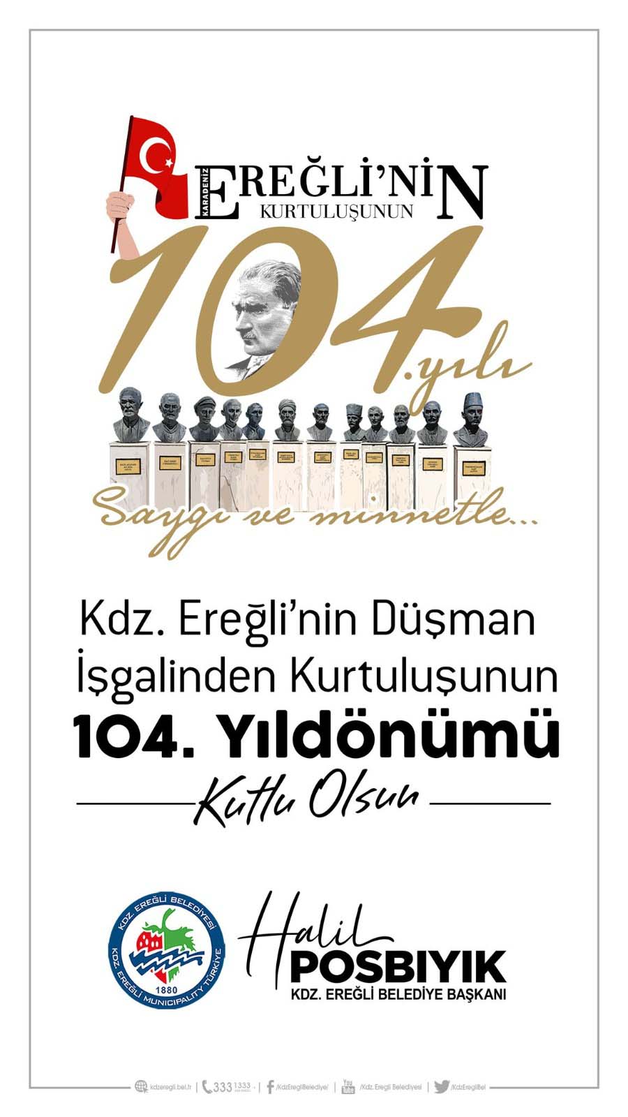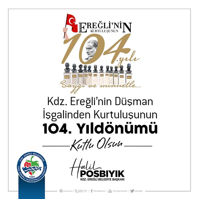 Kdz. Ereğli Belediye Başkanı Halil Posbıyık, “18 Haziran Kdz. Ereğli’nin düşman işgalinden Kurtuluşunun 104. Yılı ” dolayısıyla bir mesaj yayımladı.