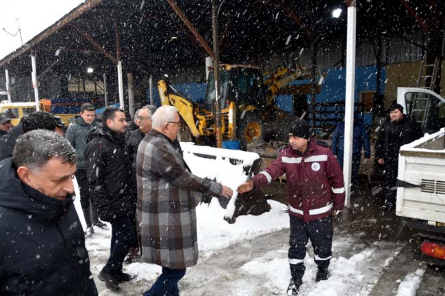 Kdz. Ereğli Belediyesi, etkili olan kar yağışına karşı tüm ekipleriyle seferber oldu. Karla mücadele çalışmalarını sahada denetleyen Belediye Başkanı Halil Posbıyık, “Tedbirlerimizi önceden aldık. Tüm ekiplerimiz sabaha kadar vardiyalı olarak çalışıyorlar. Kendi iş makinelerimizin yanında müteahhitlerimizden de destek aldık. Olağanüstü bir durum yaşanıyor. 24 saat emrinizdeyiz. Mümkün mertebe el ele verirsek bir sıkıntı yaşamadan bu süreci atlatırız” dedi.