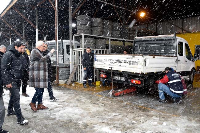 Kdz. Ereğli Belediye Başkanı Halil Posbıyık, beraberinde başkan yardımcıları ve daire müdürleriyle birlikte karla mücadele çalışmalarını sahada denetledi. Belediye şantiyesine giden Başkan Posbıyık, buradaki personele kolaylıklar diledi ardından kent genelindeki ulaşımı yerinde takip etti.