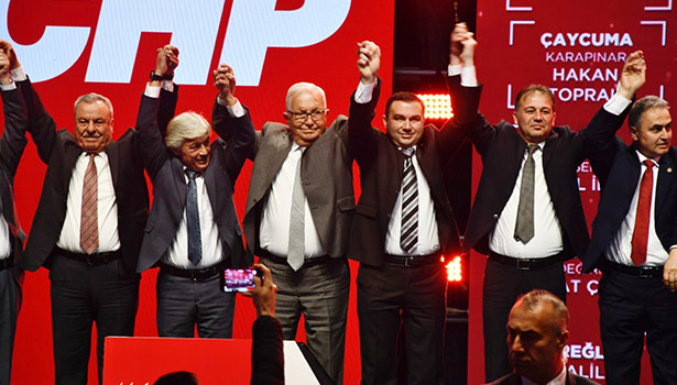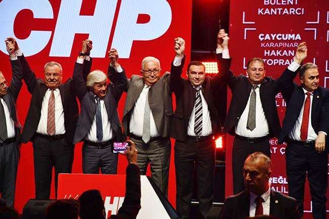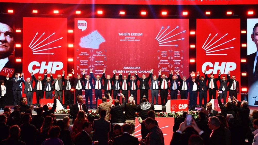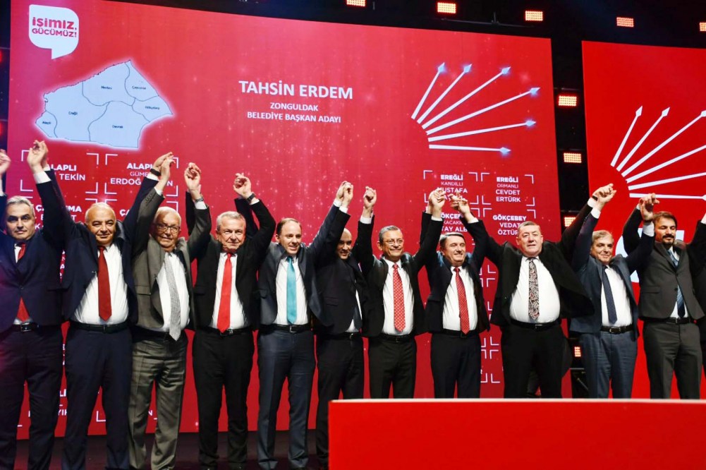 Genel Başkan Özel’in konuşmasının ardından CHP belediye başkan adayları kürsüye davet edilerek tek tek tanıtıldı.