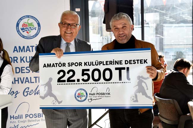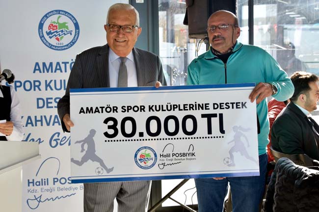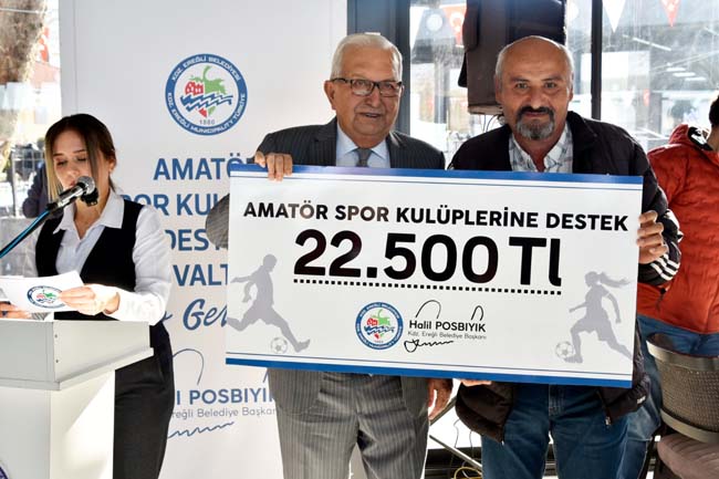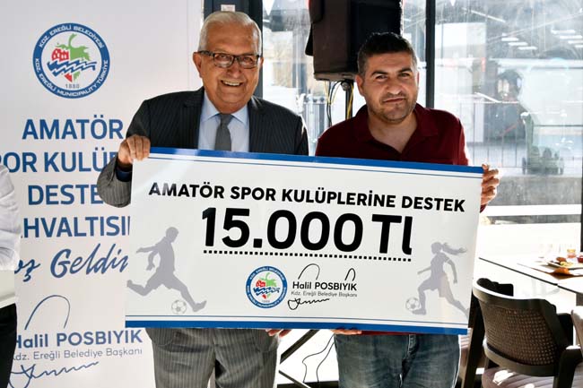Bu yılda amatör spor kulüplerimize belediye imkanları dahilinde Süper Amatör Kulübü takımlarına 30 bin TL, 1. Amatör Takımlarına 22.500 TL, 2. Amatör Takımlarına 15 bin TL olmak üzere toplam 17 kulübümüze 375 bin TL nakdi yardım yapıyoruz. Kulüplerimize hayırlı uğurlu olsun, güle güle harcasınlar.”
