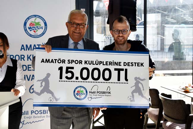 Başkan Halil Posbıyık, programda yaptığı konuşmada her yıl olduğu gibi amatör spora destek vermeyi sürdürdüklerini söyledi. 17 amatör sphor kulübüne 375 bin TL nakdi destekte bulunduklarını belirten Başkan Posbıyık, şunları söyledi: