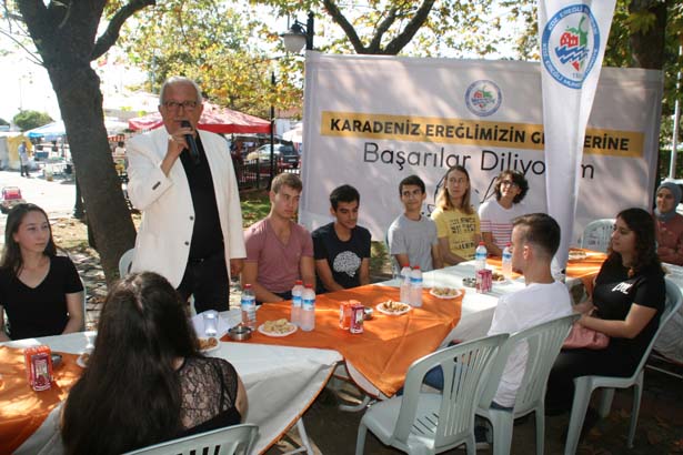 Belediye olarak başarılı öğrencileri hep destekleyeceklerini ifade eden Ereğli Belediye başkanı, “Dönüşlerinizde, sınıf geçmelerinizde bizimle gelir görüşürseniz, hatıralarınızı anlatırsanız son derece mutlu oluruz. Belediye olarak bize yasaların verdiği imkanlar dahilinde her türlü desteği vermeye hazırız. Ama bazı şeyler maalesef önümüzü kesiyor. Mesela burs verme olayına yasa izin vermiyor. Yoksa gönlümden bu geçiyor, en çok arzuladığım şeylerden biri bu. Ama ayni yardımlar yapabiliriz. Kitap ihtiyacınız olur, herhangi bir sıkıntınız olur, başım üstüne. Siz bizim medarı iftiharımızsınız. Sizleri yetiştiren anne babalara, dedelere, babaannelere teşekkür ediyorum. Allah yolunuzu, bahtınızı açık etsin, ülkemize vatanımıza yararlı insanlar olmanızı diliyorum” ifadelerini kullandı.