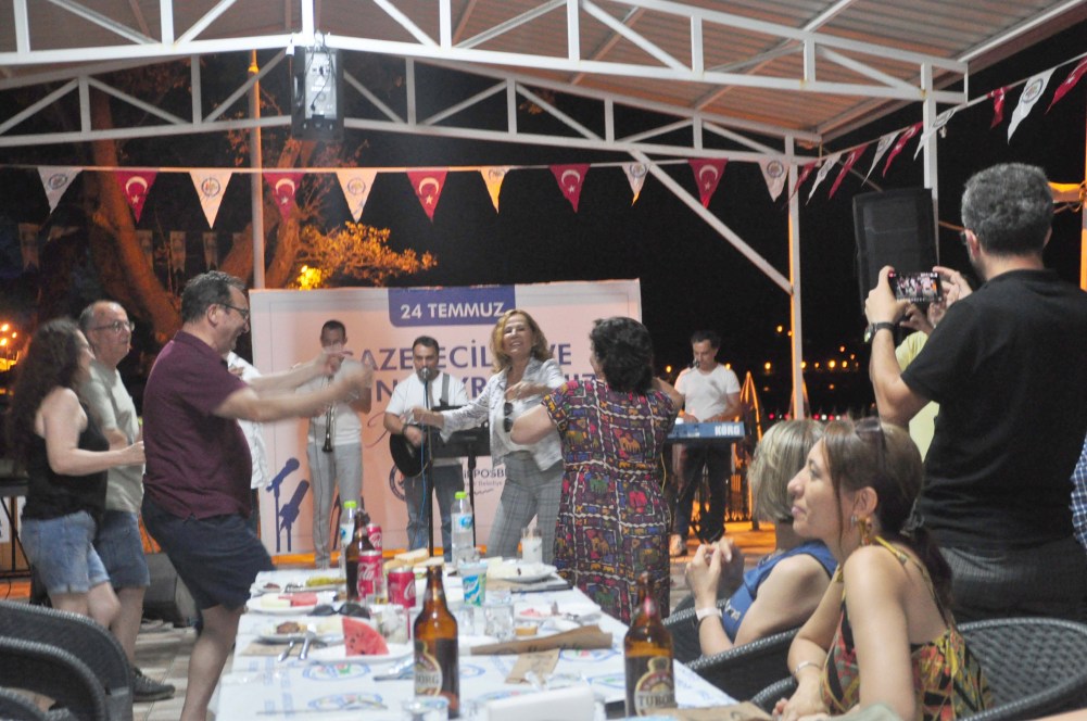 Barış Plajı’nda düzenlenen akşam yemeğinden önce basın mensupları ve aileleri tekne turu attı, ardından Aqua Park’ta havuza girerek bir süre dinlendiler. Basın bayramı yemeğine eşi Neriman Posbıyık, kızı Tuba Posbıyık Urcu, oğlu Tuğberk Posbıyık ve torunları Duhan ve Tuva ile katılan Belediye Başkanı Halil Posbıyık, gazetecilerin ve ailelerin gününü tek tek kutladı.