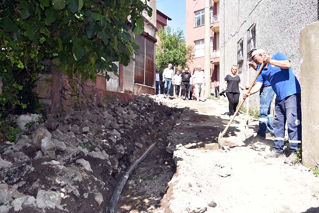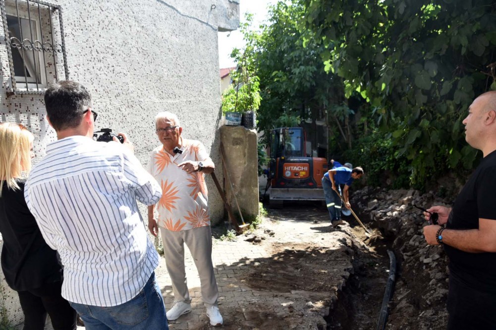 “Özellikle yeni sulama kanalları, yağmurlama hatları açıyoruz. Son zamanlarda yağışlar çok şiddetli gelmeye başladı. Elimizden geldiğince önlemler almaya çalışıyoruz. Eski hatların hepsi değişiyor. Bütün mahallelerde bu çalışmaları yapıyoruz. Çalışmalar bittikten sonra da buralar asfaltla kaplanacak. Kirmanlı Kale sokaktayız ama diğer mahallelerimizde de periyodik olarak ekiplerimiz çalışıyor. İklim değişikliğinden sonra yağmur ve sel felaketleri tüm noktalarda bizim azami ölçüde tedbir almaya itti, süratli bir şekilde bunun alt yapısını yapıyoruz. Arkadaşlarımız büyük bir gayretle bu sıcağın altında çalışıyorlar, emeklerine teşekkür ediyorum.”