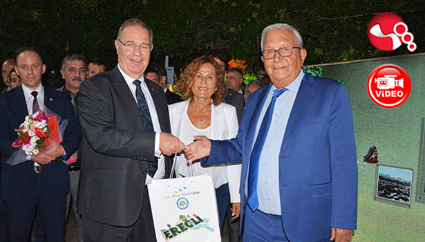 “Sizleri Ereğli’de görmekten çok büyük mutluluk duyuyoruz. Zonguldak ve ilçelerinde gerçekleştirdiğiniz çalışmaların ilçemiz ve ilimiz adına hayırlar getirmesini diliyorum. Kdz. Ereğli Belediyesi’nin devletin vergi dairesine hiç borcu yok. Sigortaya borcu yok, işçisine memuruna borcu yok. İşadamına, tüccara da borcu yok. Öz kaynakları var. Geçen dönem seçimi kaybetmedim, kapitalizm benim elimden aldı, 422 oyla kaybettim sandık oyunlarıyla. Bu defa propaganda için bütün bakanlar buradaydı, sayın cumhurbaşkanımız da 2 defa geldi. 5 sene beklememe rağmen çok büyük farkla seçimleri aldım. Ereğli’de vatandaşla iç içeyiz, gayet iyi çalışmalar yapıyoruz. Uzun zamandır belediye başkanlığı yapıyorum. Ben hayatımın hiçbir döneminde bu dönemde olduğu kadar partizanlık görmedim. Adım attırmıyorlar, kımıldayamıyoruz. TSO’daki toplantıda da söyledim. Zonguldak’ın en küçük ilçelerinde Hükümet Konağı, Emniyet Binaları olmasına rağmen bizim hala daha Hükümet Konağımız yok. Kaymakam, Belediyenin binasında oturuyor. Vatandaşın binasında İlçe Emniyet Müdürlüğü oturuyor. Ereğli’de sık sık çok büyük kazalar oluyor. Bunun en büyük sebebi çevre yolunun yapılmaması. Üniversite kampüsü yapmak için çok uzun zamandan beri hazırlık yapıyoruz. Son aşamaya geldi, temel atmak üzereydik ama bundan evvelki Kaymakamı, CHP’li Belediye Başkanı Halil Posbıyık ile çok samimi diye buradan gönderdiler. Ereğli’nin bu konudaki hafızası da onunla beraber gitti. Bağış alacağımız yerler onun hafızasındaydı.