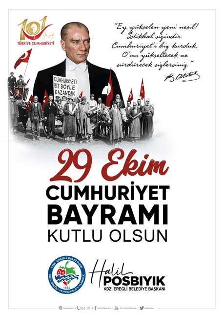 Kdz. Ereğli Belediye Başkanı Halil Posbıyık, Cumhuriyetin 101. Yılı nedeniyle kutlama mesajı yayımladı.