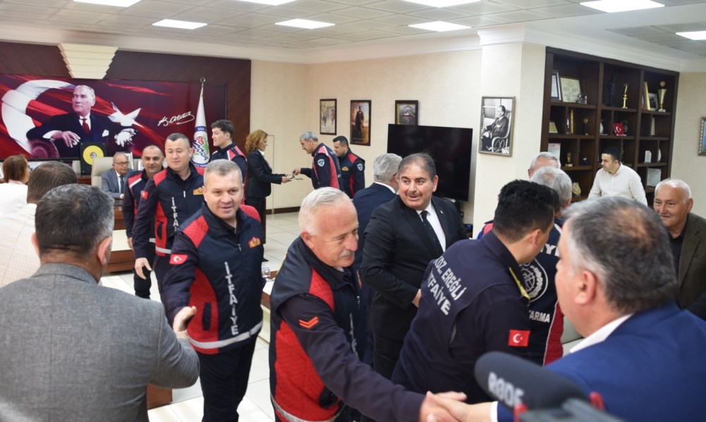 Kdz. Ereğli Belediyesi’nde geleneksel olarak düzenlenen bayramlaşma töreni Ramazan Bayramı’nın ilk günü Başkan Halil Posbıyık’ın makamında gerçekleşti.