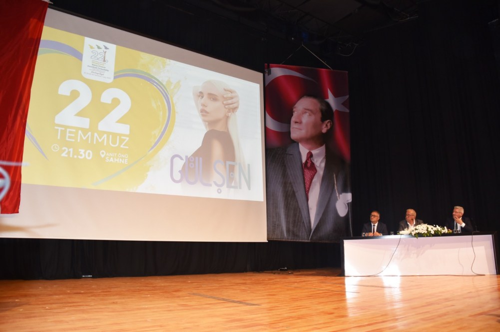 Hüseyin Tatoğlu Kültür Merkezi’nde gerçekleşen toplantıda Başkan Posbıyık, bu yıl festivali 4 güne çıkardıklarını, 21 Temmuz’da Ulusal ve Uluslar arası Folklor gösterileriyle festivalin başlayacağını söyledi. Başkan Posbıyık, 22 Temmuz Sefo, Gülşen, Edis, 23 Temmuz Melek Mosso, Haluk Levent, 24 Temmuz akşamı Madrigal, Koray Avcı ve Yıldız Tilbe’nin sahne alacağını açıkladı.
