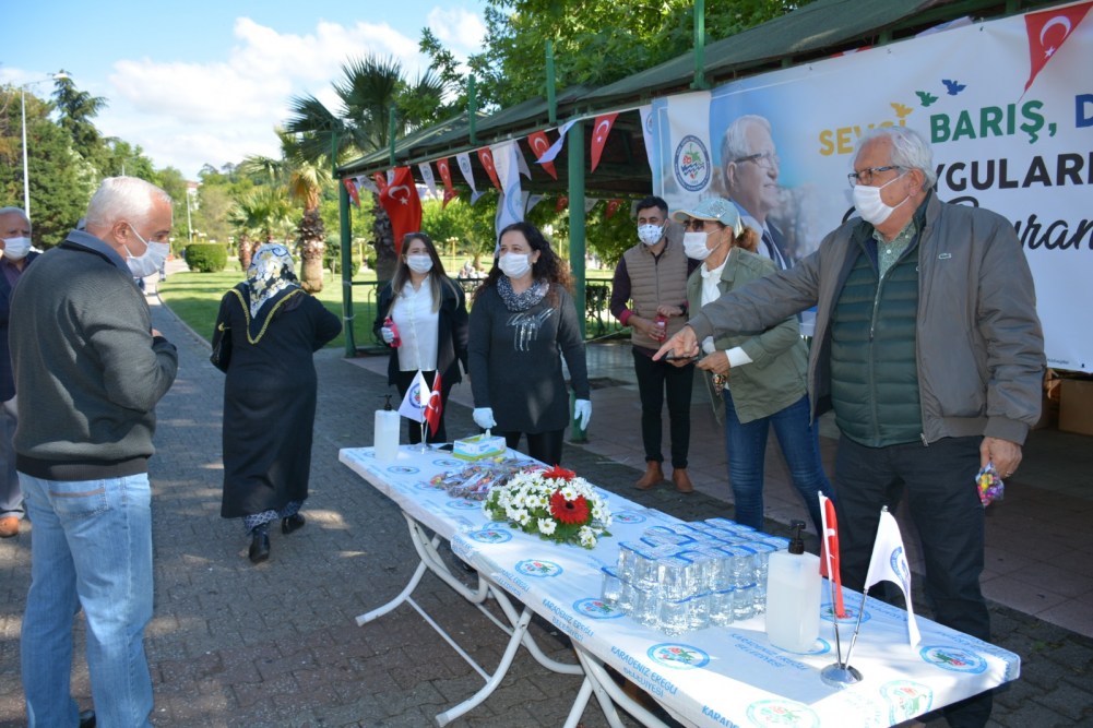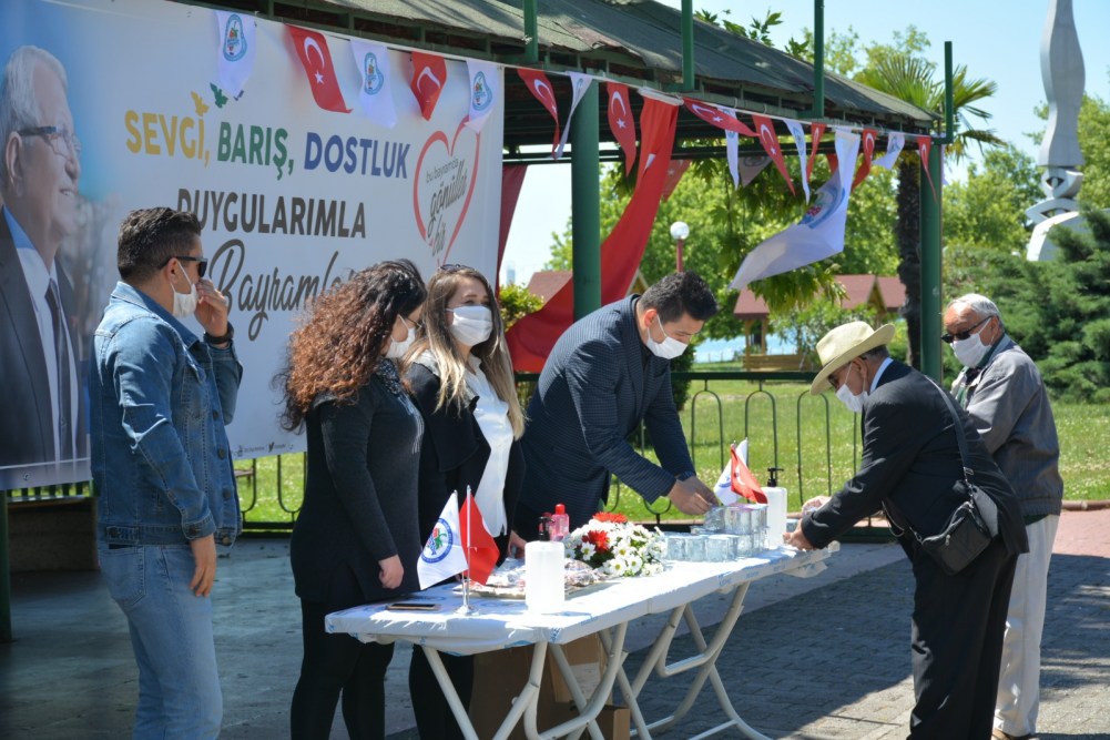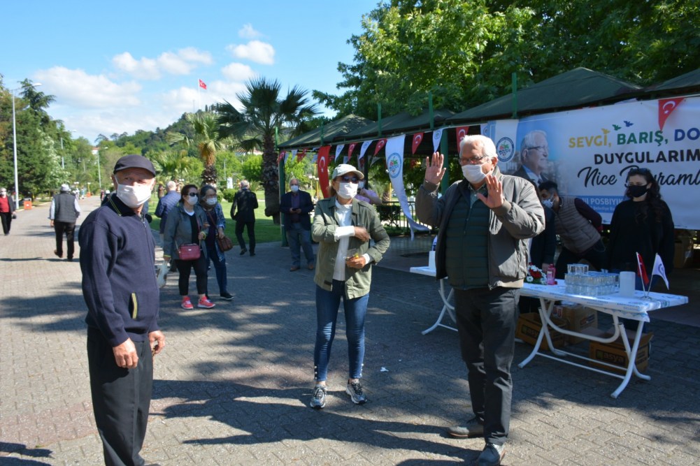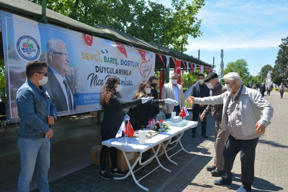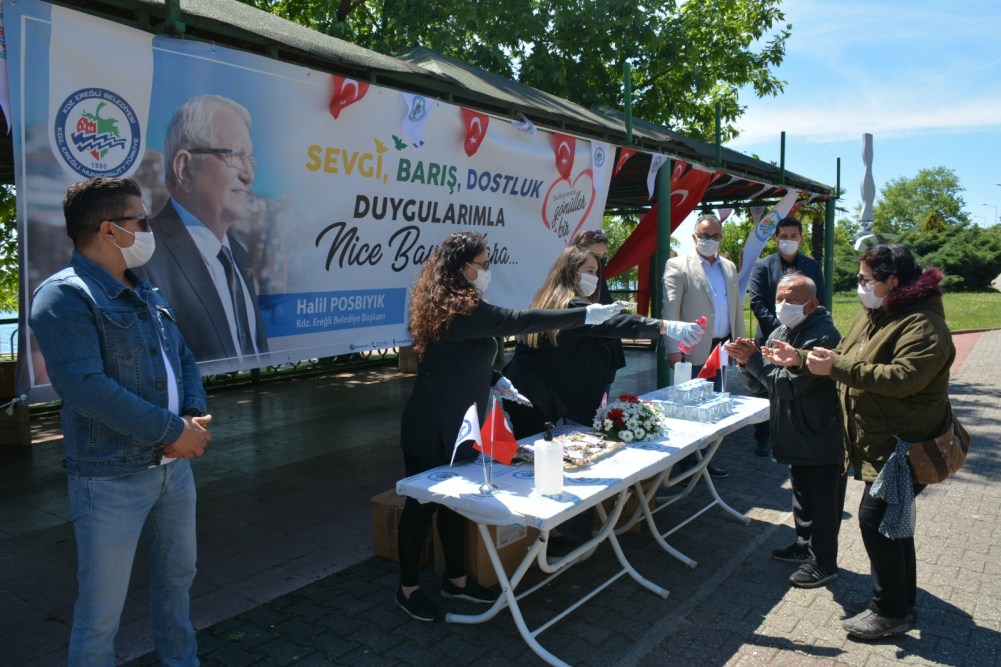Kdz. Ereğli Belediyesi pandemi süresince 3’üncü kez sokağa çıkan 65 yaş üstü vatandaşlara bayram şekeri, su ve kolonya ikram etti, maske dağıttı. Belediyenin canlı müzik aracı da mahalleleri dolaşarak müzik çaldı, çocuklara bayram şekeri dağıtıldı. Başkan Halil Posbıyık ve eşi Neriman Posbıyık, sahilde nefes alan vatandaşlarla sohbet ederek bayramlarını kutladı.