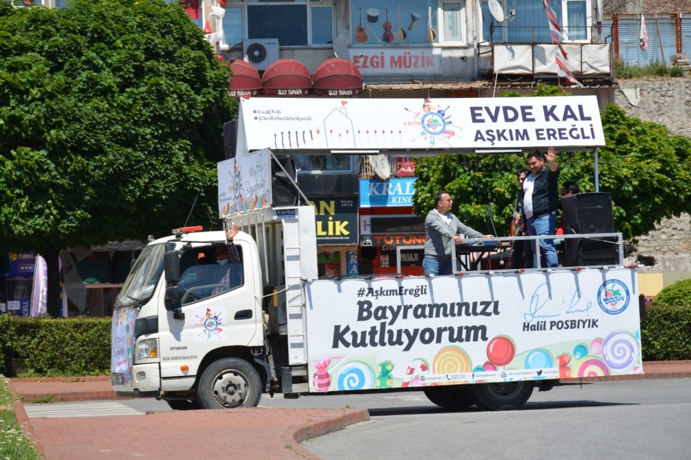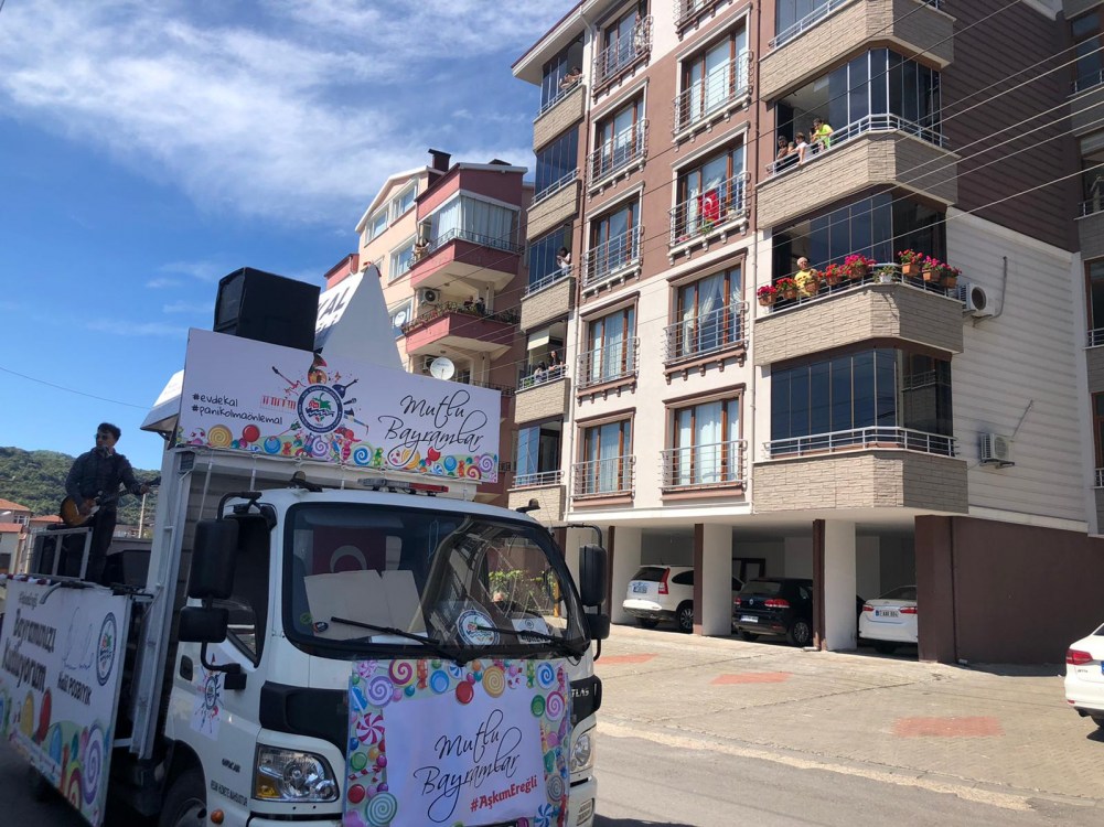 Kdz. Ereğli Belediyesi tarafından evlerinden çıkamayan vatandaşlara moral vermek için hizmete sunulan canlı müzik aracı da mahalleleri dolaşarak müzik yayını yaptı. Görevliler mahallerde çocuklara bayram şekeri dağıttı. Canlı müzik aracı bayram süresince 31 mahalleyi dolaşarak vatandaşlara moral vermeyi sürdürecek.
