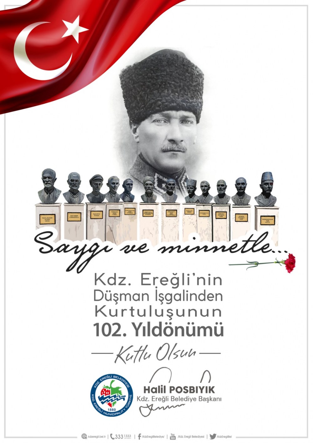 Kdz. Ereğli Belediye Başkanı Halil Posbıyık, Kdz. Ereğli’nin kurtuluşunun 102. Yılı nedeniyle kutlama mesajı yayımladı.