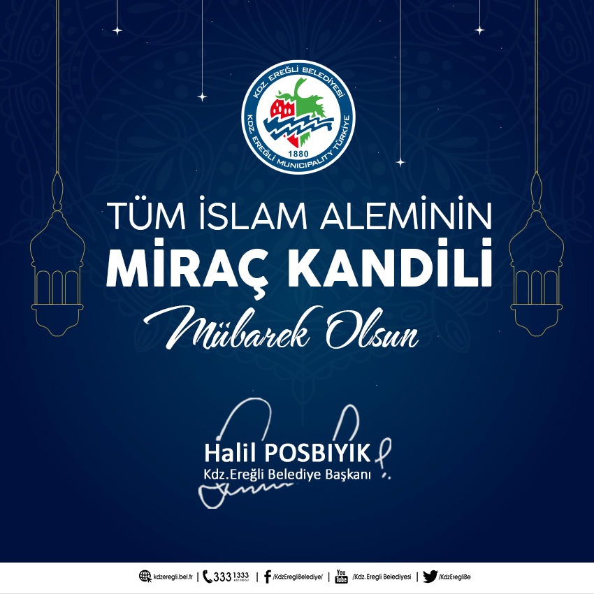 Karadeniz Ereğli Belediye Başkanı Halil Posbıyık, sosyal medya mesajında Miraç Kandili’ni kutladı.