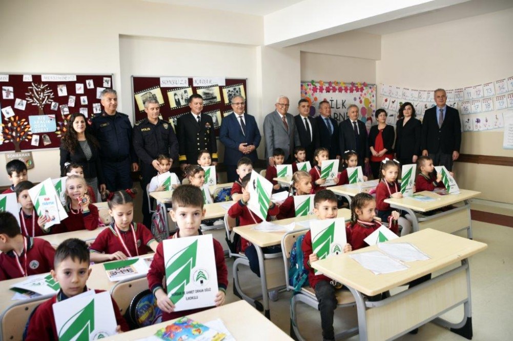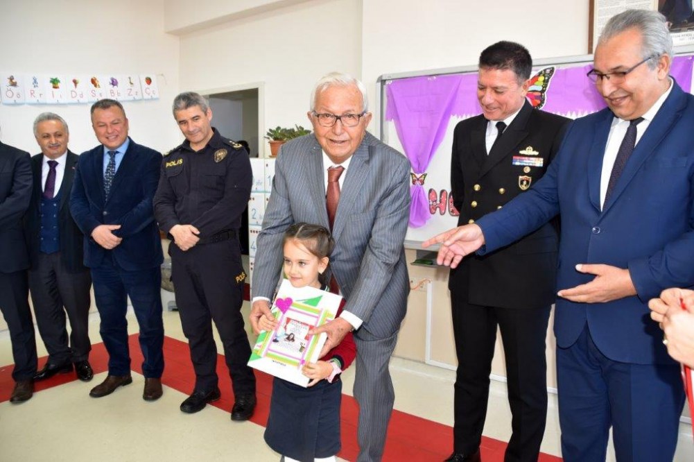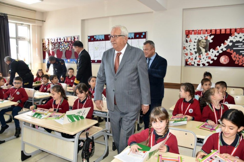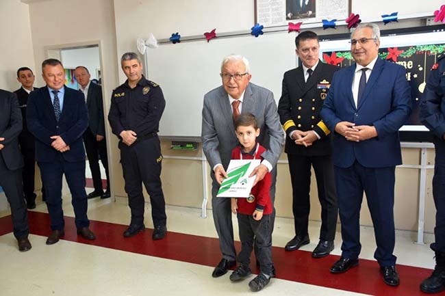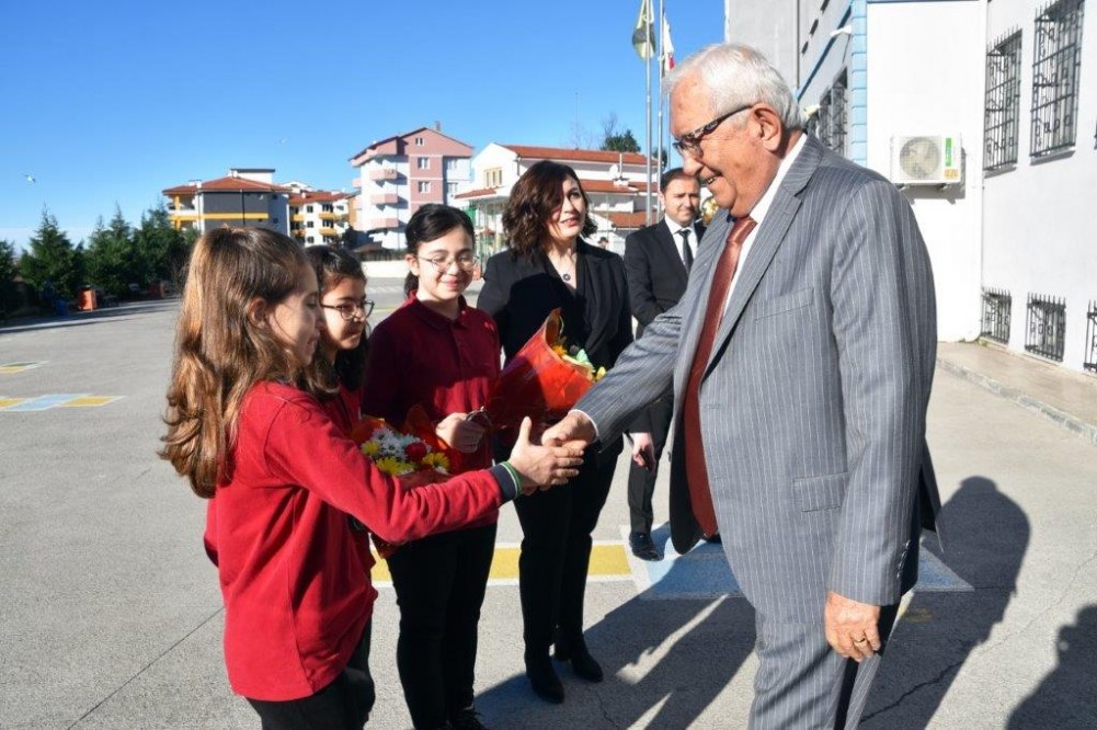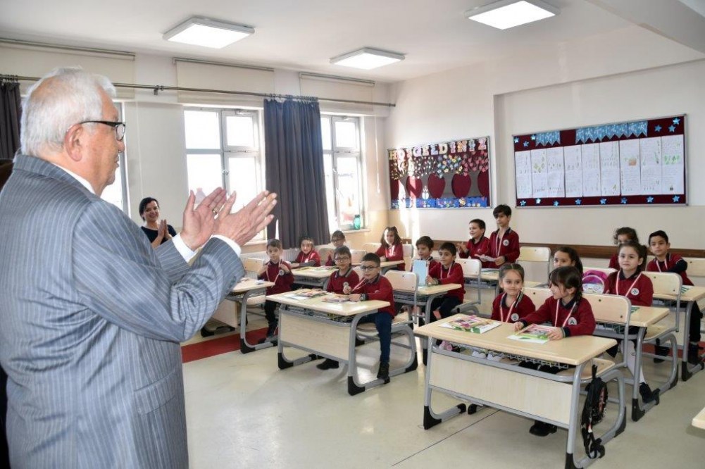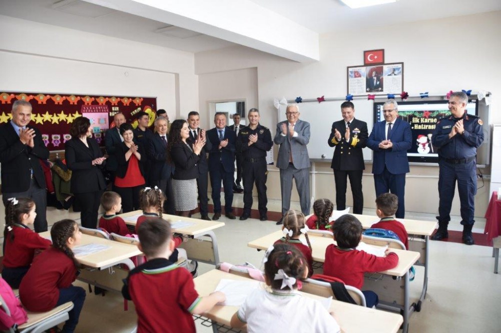 İlçe protokolüyle birlikte Nurdan ve Ahmet Orhan Oğuz İlkokulu’nda ilk karnelerini alan miniklerin heyecanına ortak olan Başkan Posbıyık, iyi bir yarı yıl tatili diledi.