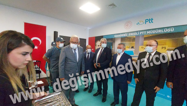 Ereğli’de kısa süre önce yapımı tamamlanan ve bugün resmi açılışı gerçekleştirilen PTT binasının açılışı töreninde Ereğli Belediye Başkanı Halil Posbıyık, Vali Mustafa Tutulmaz’ın yanına giderek, kendisinin Ereğli halkını temsil etmesine rağmen konuşma hakkının verilmemesinden dolayı özür dileyerek salonu terk etti.