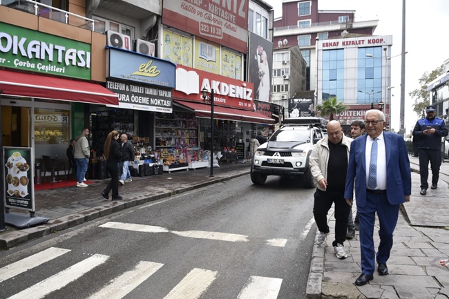 Kdz. Ereğli Belediye Başkanı Halil Posbıyık, Un pazarı bölgesinde süren çalışmaları yerinde denetledi, esnafı gezdi.