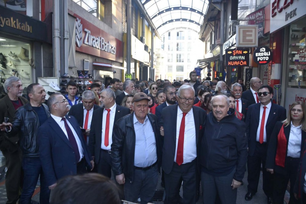 Kdz. Ereğli Belediye Başkanı ve CHP Belediye Başkan Adayı Halil Posbıyık ekbiyle birlikte çarşı esnafını ziyaret etti.