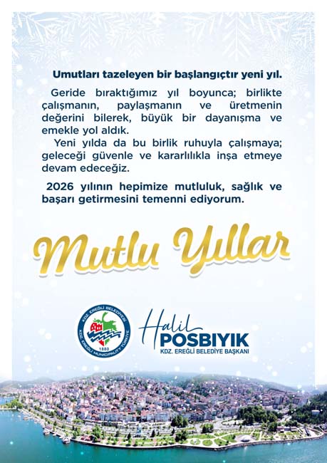 Kdz. Ereğli Belediye Başkanı Halil Posbıyık, "2026 yılının hepimize mutluluk, sağlık ve başarı getirmesini temenni ediyorum. Mutlu Yıllar!”
