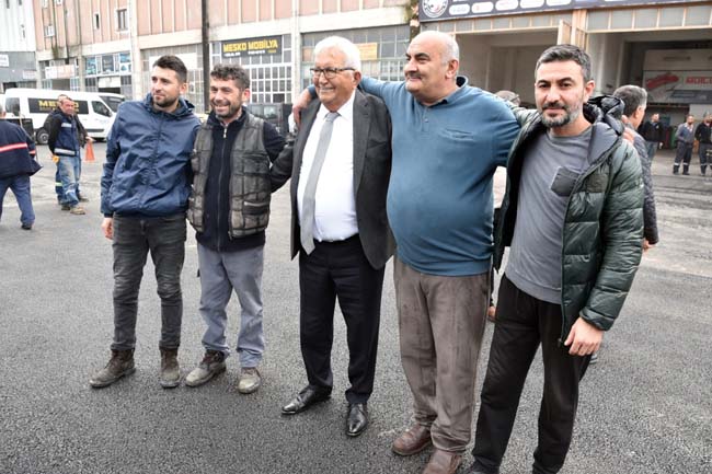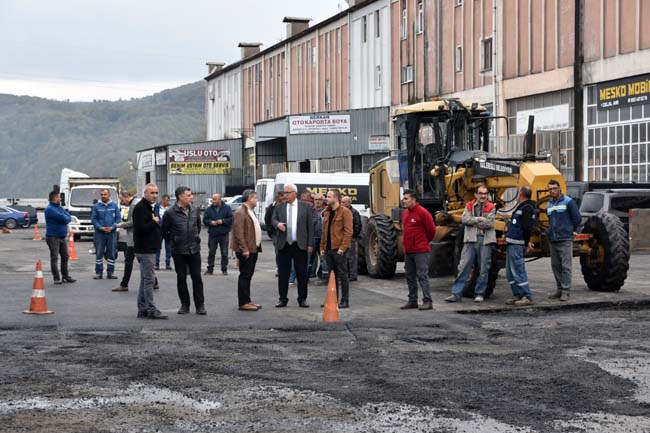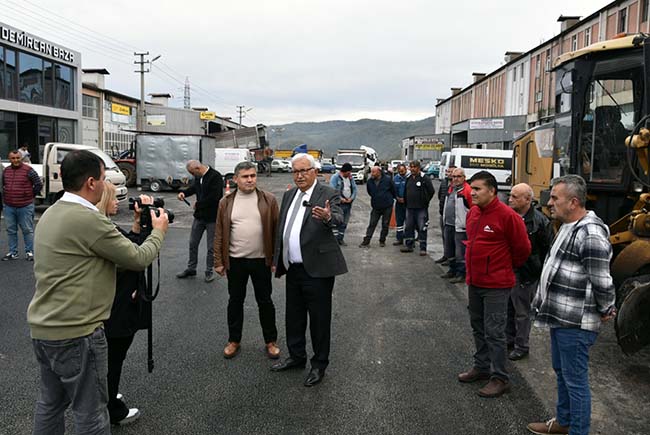 Belen Sanayi Sitesi Yönetimi Başkanı Cengiz Güneş ve sanayi esnafı tarafından karşılanan Başkan Posbıyık, asfalt çalışmalarının devam edeceği mesajını verdi.