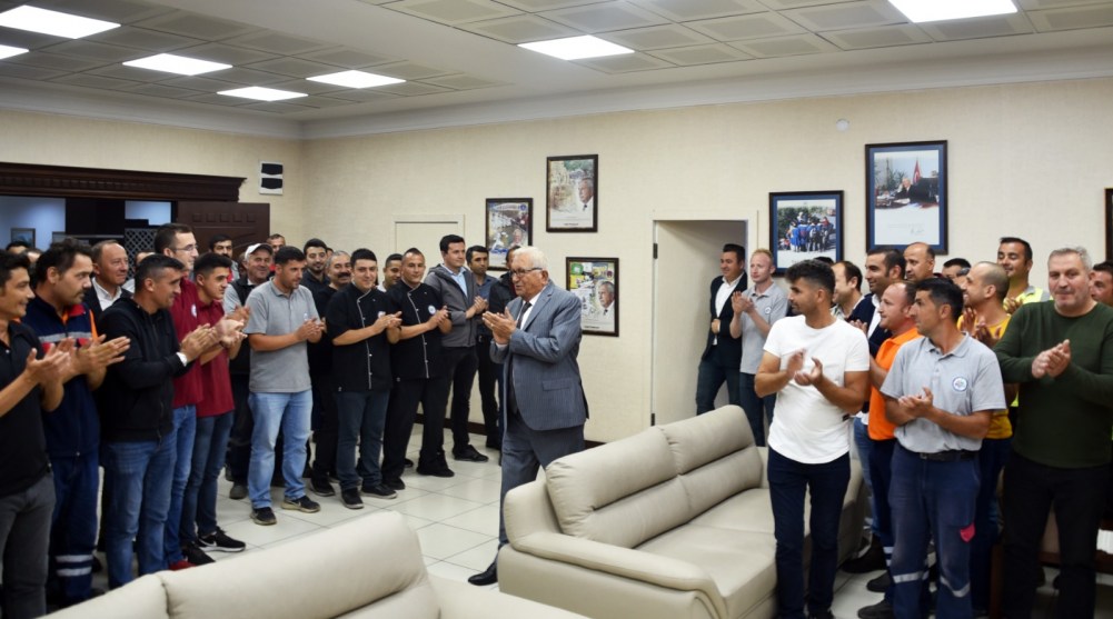 Başkan Posbıyık, çalışanları makam odasında ağırladı. İşçiler adına konuşan Belediye-İş Sendikası temsilcileri sözleşme zammı nedeniyle teşekkür ederek; “Sözleşme döneminde verilen zamlardan dolayı çalışan arkadaşlarımız teşekkür etmek istediler. Sizlere hediyeleri olacak arkadaşlarımızın. Çalışanlara verdiğiniz destekten dolayı teşekkür ediyoruz” değerlendirmesinde bulundular.
