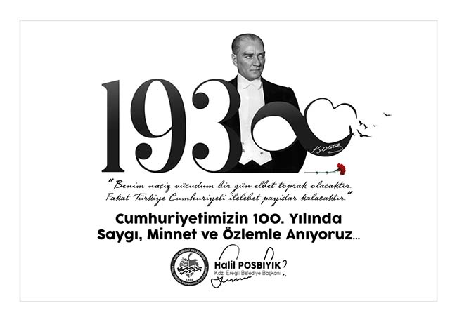 Onun ışığında birleşen Türk milleti olarak, Atamızın en büyük emaneti olan Cumhuriyetimize her yönüyle sahip çıkacağımıza söz vererek, ulusumuzun yüreğinde ölümsüzleşen, büyük önder Gazi Mustafa Kemal Atatürk’ü bir kez daha sevgi, saygı, minnet ve şükran duygularıyla anıyoruz.