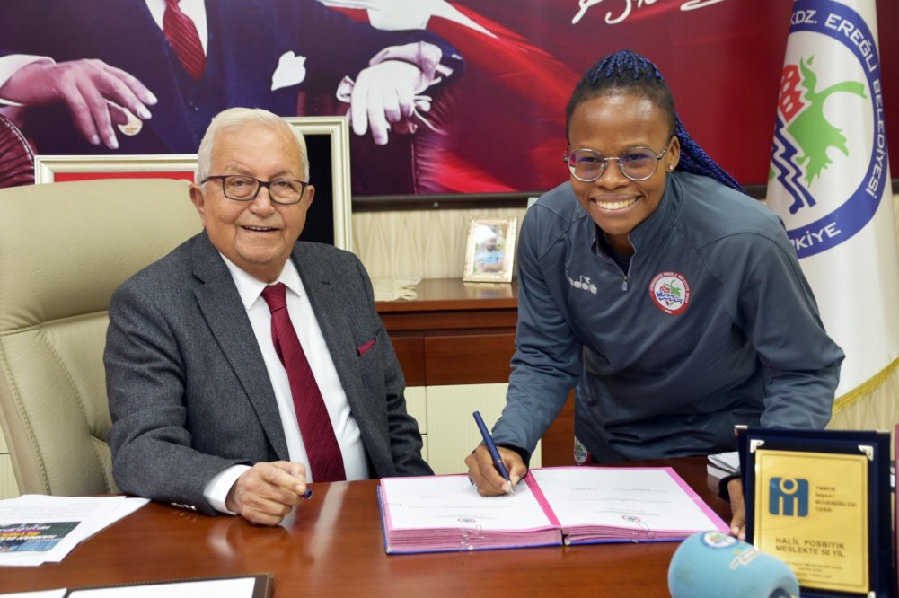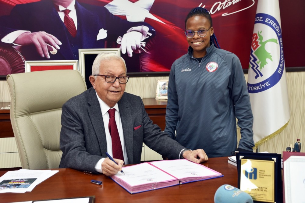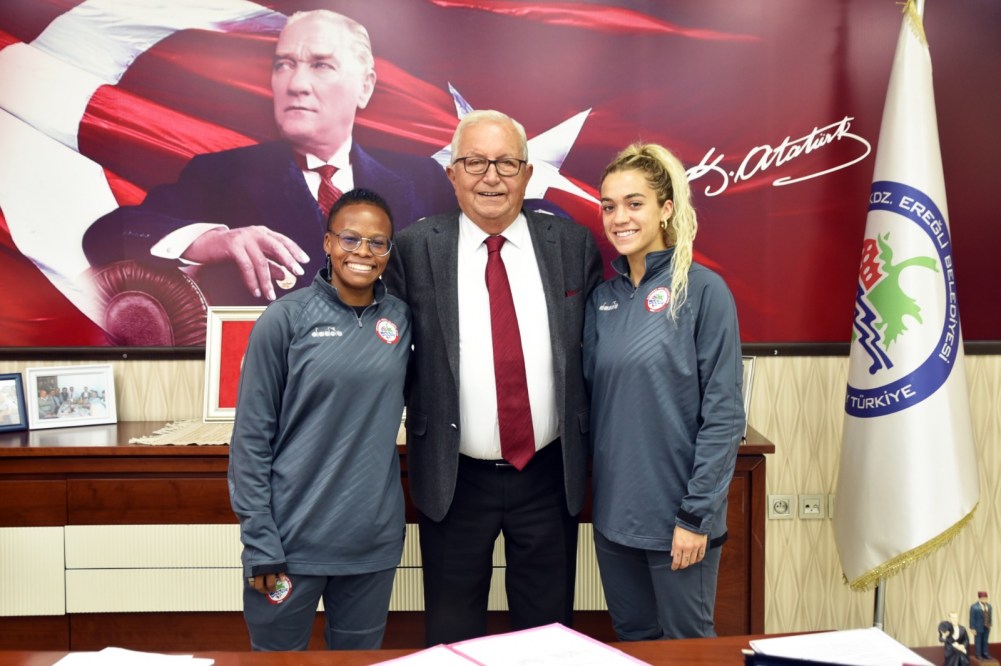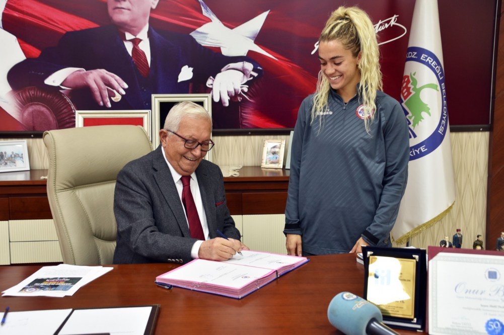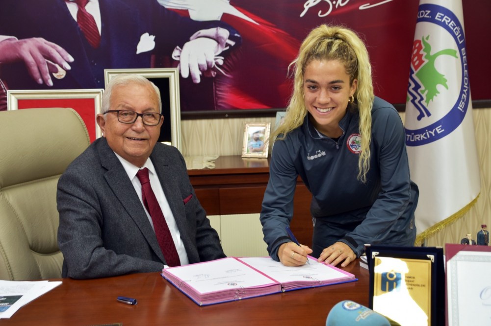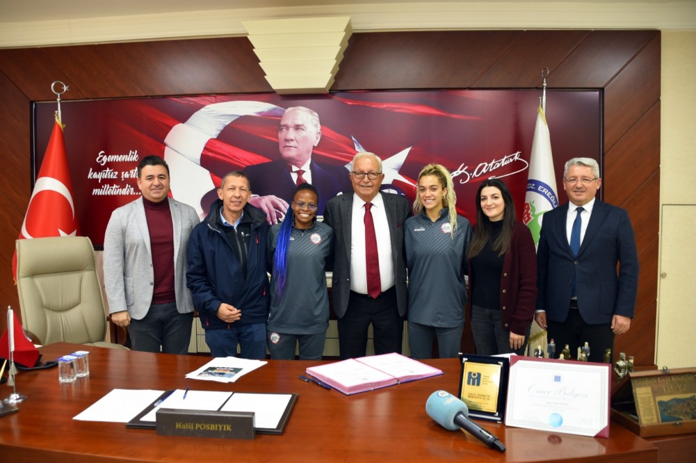Takıma katılan yeni transferler için Belediye Başkanı ve Kulüp Başkanı Halil Posbıyık’ın makamında imza töreni düzenlendi. Kulüp 2. Başkanı Halil Bozkuş, As Başkan Deniz Koca, Kadın Futbol Takımı’ndan sorumlu As Başkanlar Muhammet Ali Ateş ve Abdulkerim Sağlam, Mali İşler Sorumlusu Recep Köksal, Özel Kalem Müdürü Faruk Deniz ve Teknik Direktör Taner Alpak’ın katıldığı imza töreninde Belediye ve Kulüp Başkanı Halil Posbıyık, yeni transferlerin Ereğli’ye hayırlı olmasını diledi.