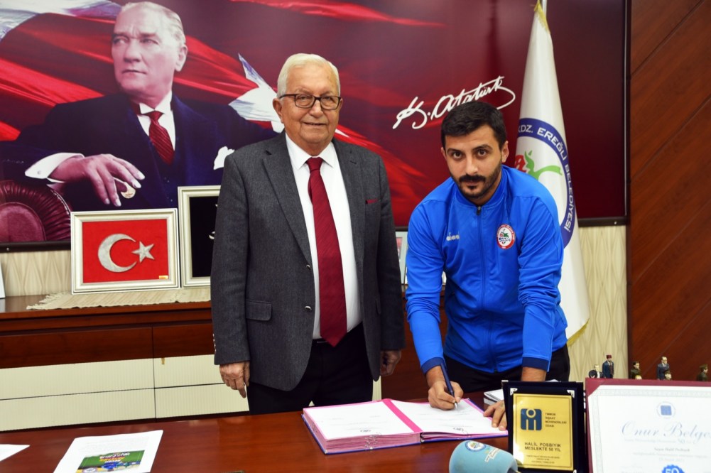 Bölgesel Amatör Ligi (BAL) 5. Grupta şampiyonluk mücadelesi veren Kdz. Ereğli Belediyespor devre arasında kadrosuna kattığı 2 oyuncudan sonra 6 yeni transfer daha gerçekleştirdi. Belediye Başkanı ve Kulüp Başkanı Halil Posbıyık, Kdz. Ereğli Belediyespor Erkek Futbol Takımı’na transfer edilen 5 futbolcu ve Kadın Futbol Takımı’na transfer edilen 2 yabancı sporcu ile sözleşme imzaladı. Yeni transfer olan santrafor Recep Akkemik ise Antalya kampında takıma katılacak. Başkan Posbıyık, ligde şampiyon olmak istediklerini belirterek; “En büyük özlemim büyük festivalde ana sahnede şampiyon takımı halkın önüne çıkararak Sevgi, Barış, Dostluk ödülünü vermek, Ereğli’nin erkek futbolda hasretini sona erdirmek” dedi.