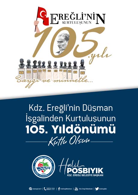 Karadeniz Ereğli Belediye Başkanı Halil Posbıyık’ın Karadeniz Ereğli’nin düşman işgalinden kurtuluşunun 105. Yılı dolayısıyla kutlama mesajı yayımladı.