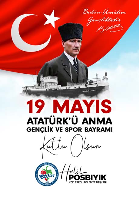 Kdz.Ereğli Belediye Başkanı Halil Posbıyık, 19 Mayıs Atatürk’ü Anma Gençlik ve Spor Bayramı nedeniyle bir mesaj yayımladı.