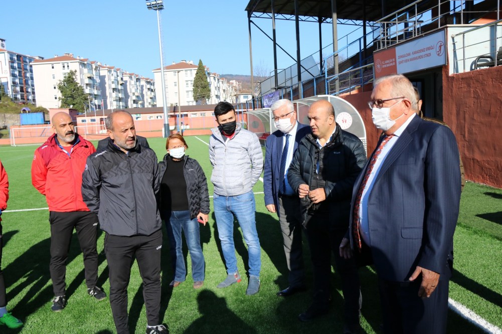 Kdz. Ereğli Belediye ve Belediyespor Kulüp Başkanı Halil Posbıyık, belediye meclis üyeleri, başkan yardımcıları, daire müdürleri ile bugün yapılan antrenman sırasında takımı ziyaret ederek moral verdi.
