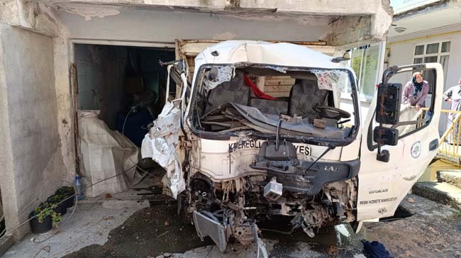 Kdz. Ereğli Belediyesi Fen İşleri Müdürlüğü’ne bağlı hafriyat kamyonu sabah saatlerinde Güldere rampasından inişte freninin boşalması sonucu kaza yaptı, duvarlara çarparak bir evin garajına girdi. Kazada araç şoförü Vedat Vural (45) ve işçi Barış Yılmaz (45) yaralandı. Yaralı işçiler ambulansla Devlet Hastanesi’ne kaldırılarak tedavi altına alındı.