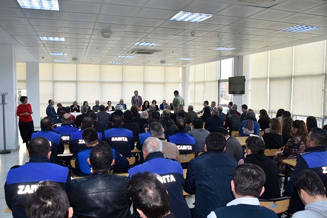 “Her zaman olduğu gibi sizleri iyi şartlarda ve huzurlu bir ortamda çalışmanızı sağlamak için tüm gayretimi gösterdim. Bu huzurlu ortamı sağlamakta bir yöneticilik başarısıdır. Yardımcılarıma, müdürlerime ve tüm çalışma arkadaşlarıma bana yardımcı oldukları için teşekkür ediyorum. Bundan sonrada aynı ivme ile yolumuza devam edeceğiz. Yasaların verdiği imkanlar ölçüsünde bugüne kadar en iyisini yapmaya çalıştım. Kamu görevlilerinin toplu iş sözleşmesinde, devletçe belirlenen tavan dahilinde yine en yüksek oranda zam yapıldı. Hayırlı olsun.”