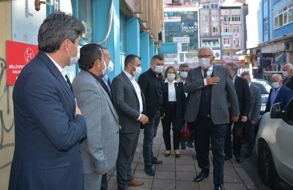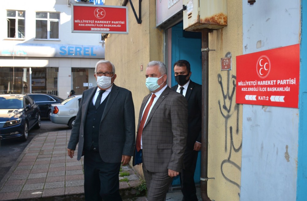 Kdz. Ereğli Belediye Başkanı Halil Posbıyık, Milliyetçi Hareket Partisi (MHP) Kdz. Ereğli İlçe Başkanlığı’na iade-i ziyarette bulundu. ‘Ereğli’yi Ereğlililer yönetmeli’ mesajı veren Başkan Posbıyık, siyasi partilerle birlikte el ele vererek güzel hizmetler yapacaklarına inandıklarını söyledi. MHP İlçe Başkanı Rahman Demirtürk de Ereğli’ye hizmetleri konusunda Başkan Posbıyık’ı desteklediklerini belirterek, “Biz Ereğli’nin menfaatine olan her konuda başkanımızın yanındayız. Ereğli’nin üst düzey siyasi temsili yok, sanki Zonguldak’ın üvey evladıyız. Eğer Zonguldak ERDEMİR’in vergilerinden dolayı teşvik kapsamına alınmıyorsa o zaman Ereğli’yi il yapın’ dedi.