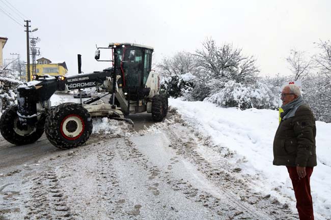 Hastane kavşağındayız şuanda. En önemli merkezlerimizden biri. Belediye olarak çok büyük ağırlık veriyoruz buraya. 24 saat burada hem iş makinemiz var hem tuzlama araçlarımız var. Sağlık bakımından hastalarını getirecek olanlar bir sıkıntıya girmesin diye 24 saat vardiya yapıyoruz. Bu bölgenin kapalı kalmaması için her türlü gayreti gösteriyoruz. Kar yağışı daha çok Ereğli’nin tepe noktalarında yoğunlaşmaya başladı. Sarıkokmaz tepesindeyiz. Bütün ekiplerimiz çalışıyor, hem greyderlerimiz hem tuzlama ekibimiz çalışıyor. Tıkalı bir yolumuz yok.”