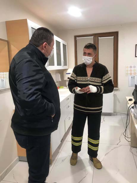 Zonguldak Alaplı Belediye Başkan Nuri Tekin, 2 kişinin yaşadığı evde çıkan yangını söndürmek üzere görev başında dumandan etkilenen itfaiye erlerini hastanede ziyaret etti.