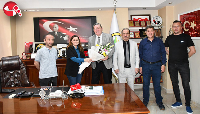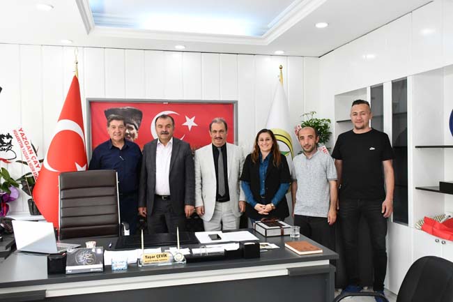 Erel ve beraberindeki Yönetim Kurulu Üyeleri Başkan Tekin'in ardından Başkan Yardımcısı Yaşar Çevik'i de ziyaret ederek, görevinde başarı dileğinde bulundular.