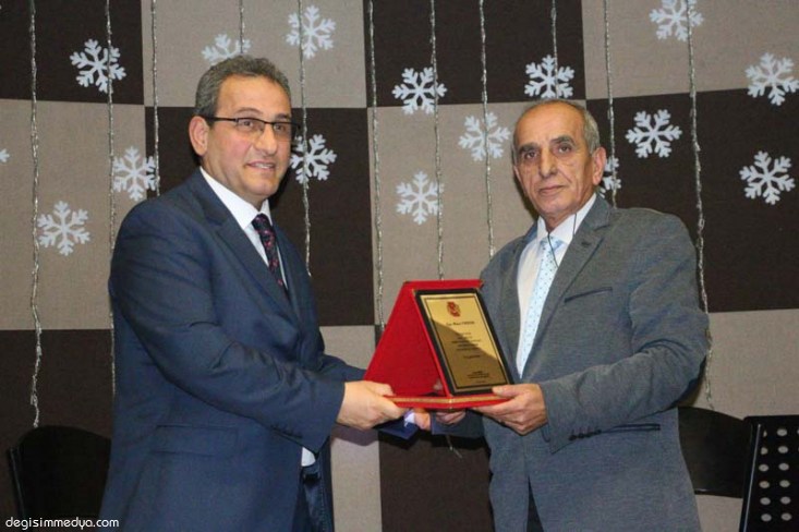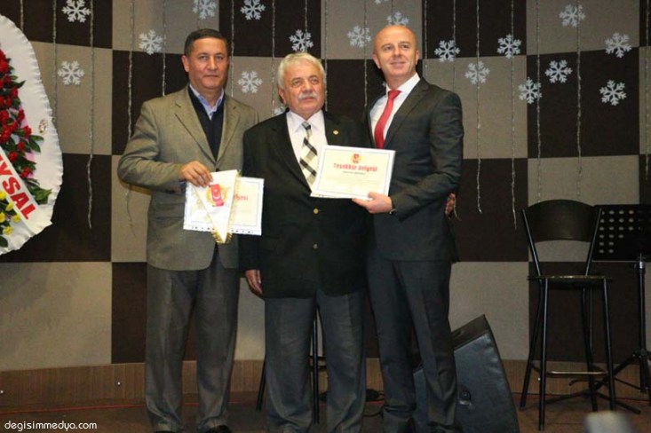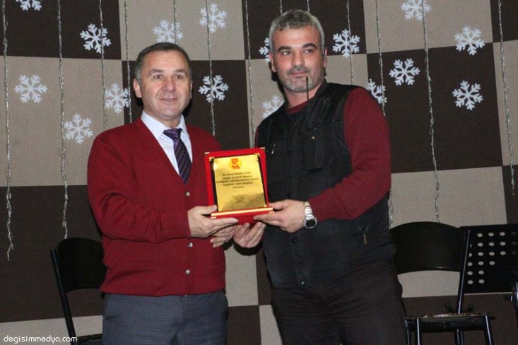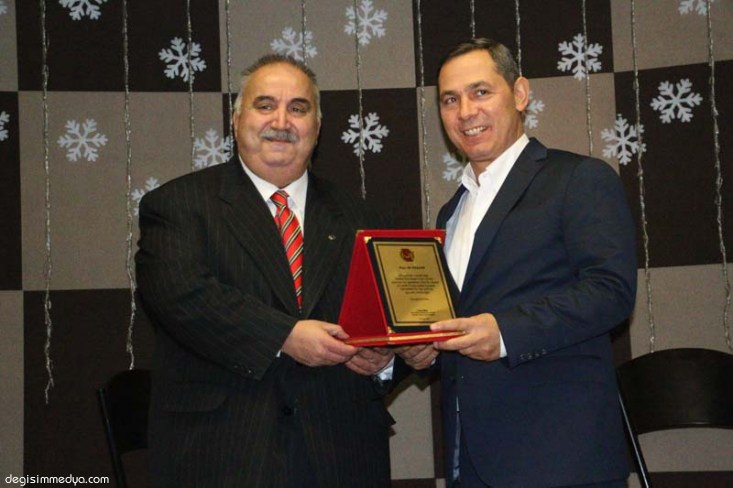 EGD Başkanı Günay, konuşmaların ardından Ereğli Belediye Başkanı Hüseyin Uysal'a geceye katkılarından ötürü plaket verdi.