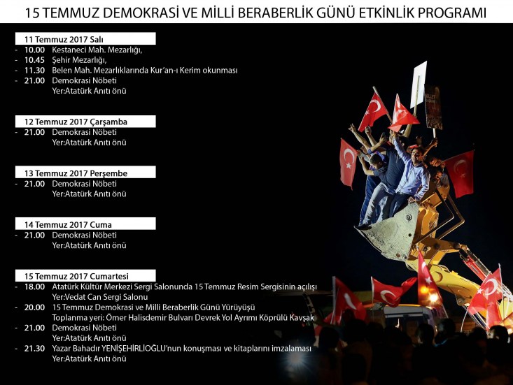 program dâhilinde 5 gün sürecek olan demokrasi nöbetleri ile, 15 Temmuz 2017